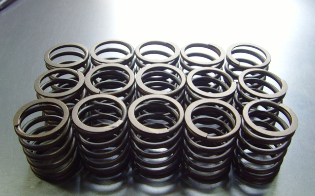 氣門(mén)彈簧多采用優(yōu)質(zhì)合金鋼絲制成,并經(jīng)熱處理,提高其疲勞強(qiáng)度。為了避免彈簧銹蝕。彈簧的兩端面必須磨平并與彈簧軸線相垂直,以防止工作中彈簧產(chǎn)生歪斜。