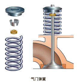 氣門(mén)彈簧位于氣缸蓋與氣門(mén)桿尾端彈簧座之間。氣門(mén)彈簧的功用是保證氣門(mén)關(guān)閉時(shí)能緊密地與氣門(mén)座或氣門(mén)座圈貼合,并克服在氣門(mén)開(kāi)啟時(shí)配氣機(jī)構(gòu)產(chǎn)生的慣性力,使傳動(dòng)件始終受凸輪控制而不相互脫離。